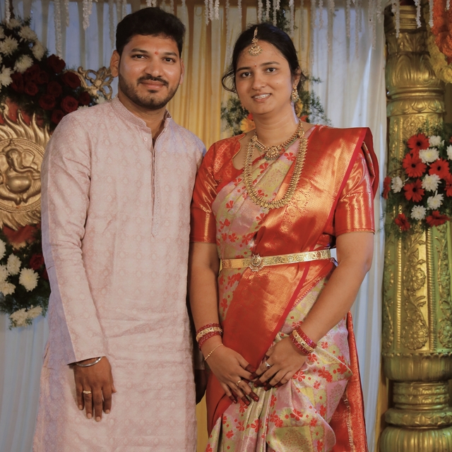 Our wedding journey begins in our village with Pelli Kuthuru, a meaningful South Indian tradition where family and friends bless the couple before the wedding day. We are Manasa Chowdary and Srinadh Chowdary, and our story began through matrimony, guided by our families. A simple phone call turned into honest conversations, shared values, and a deep sense of comfort. With our families’ blessings, we chose each other and are getting married on April 12th. The celebrations include a royal Rayalaseema reception, offering authentic regional cuisine served on a traditional platter. Our wedding will take place near the famous Kanipakam Lord Ganesha Temple, a place of spiritual significance, featuring timeless South Indian rituals and a traditional wedding breakfast. This is more than a wedding—it’s an opportunity to experience SouthIndian culture, food, spirituality, and heartfelt hospitality.